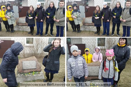 7 апреля городская библиотека №1 и ученики ГУО «Средняя школа №9 г. Борисова» в рамках традиционной Акции Памяти, посвященной Международному дню освобождения узников фашистских концлагерей, провели реквием «Холокост: уничтожение, освобождение, спасение» у памятного камня по ул. им. П. Лопатина.