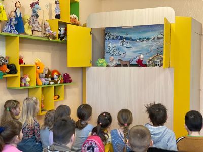По случаю весенних каникул, ребятам была представлена полная веселья народная сказка «Лиса и волк».