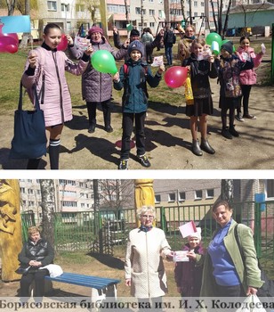 27 апреля городская бибиототека №1 провела флешмоб «Первомай шагает по стране» с участием учеников ГУО «Средняя школа №23 г. Борисова».Участники мероприятия поздравляли жителей микрорайона с наступающим праздником 1 Мая, раздавали поздравительные открытки с краткой историей праздника и традициями празднования Первомая в разных странах. Старшее поколение с удовольствием вспоминало, какая неповторимая атмосфера царила в это время по всей стране. Постепенно праздник превратился из ежегодного политического митинга в любимое народное торжество. Красные флажки и воздушные шарики – неотъемлемые атрибуты этой даты.