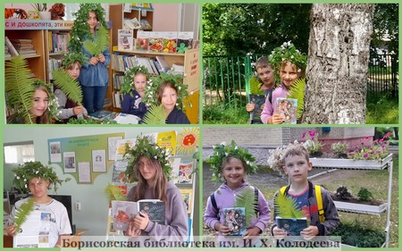 Библиотекарь Татьяна Маевская провела с детьми краткий обзор «Купальские забавы» о традициях и обычаях празднования этого праздника, рассказала, что по обычаю в этот день люди загадывали желание и украшали берёзки разноцветными ленточками. Дети играли в различные игры, пели песни, водили хоровод, разгадывали загадки, участвовали в конкурсах и викторинах.