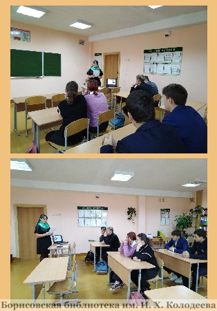 7 октября библиотекарем интегрированной сельской библиотеки №28 д.Новосады в ГУО «Новосадская средняя школа Борисовского района» проведен литературный час «Моим стихам, написанным так рано…» к 130-летию со дня рождения М. Цветаевой. Ученики 10-11 классов познакомились с жизнью и творчеством русской поэтессы одной из крупнейших поэтических эпох, женщины трагической жизни с трагическим концом.