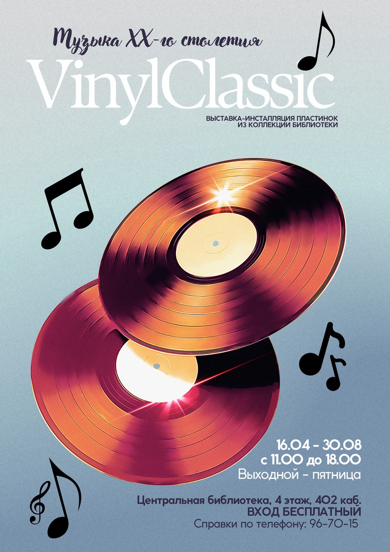 Библиотека имени И.Х. Колодеева приглашает посетить выставку «VinylClassic: музыка XX столетия», на которой представлены виниловые пластинки из фонда библиотеки. Экспозиция включает издания, выпущенные в СССР и России в период с 1950 по 1990-е гг.