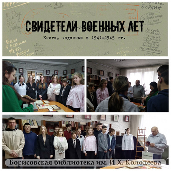 16 апреля учащиеся 9 класса Средней школы №9, посетив экспозицию «Редкая книга», узнали не только про Фонд редких и ценных изданий библиотеки, послуживший основой для создания экспозиции, о книгах и периодических изданий с начала XIX века и до настоящего времени, но и послушали литературный обзор книжной выставки «Свидетели военных лет» на уникальные издания 1941-1945-х гг.