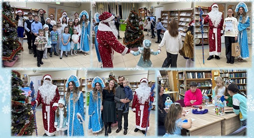 Все гости вначале праздника чувствовали себя комфортно, с интересом рассматривали книжную выставку «Новогодних красок хоровод» и с удовольствием фотографировались в праздничной фотозоне. Красавица Снегурочка, Колдунья, Эльф и Дед Мороз создали волшебную атмосферу праздника. Ребята выполнили все задания, освободили из ледяного плена Деда Мороза и дружно водили хороводы вокруг нарядной ёлочки. Дед Мороз поздравил всех присутствующих с Новым годом, внимательно слушал ребят, читающих стихи, загадывал детям загадки, поиграл в «снежки» и подарил подарки. Для детей и взрослых сотрудниками детско-юношеского отдела был организован мастер-класс «Новогодняя открытка». А потом все вместе сделали общее фото со всеми героями праздника.