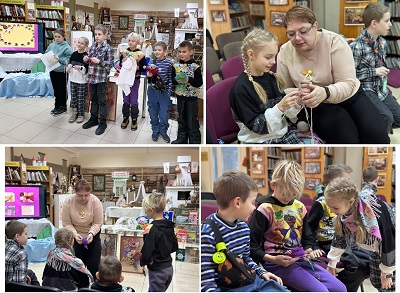 21 декабря в детско-юношеском отделе центральной библиотеки в рамках работы краеведческого кружка «Юные знатоки Борисова» для учащихся 4 «В» класса ГУО «Гимназия №3 г. Борисова» был проведен исторический экскурс «Волшебство вышивки и вязания».