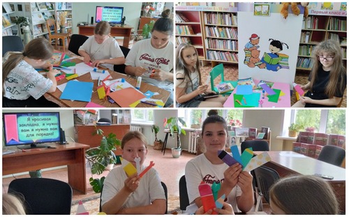 Библиотекарь Ангелина Прокопенко рассказала ребятам историю создания книжной закладки, показала, как она выглядела в 13 веке и какое разнообразие закладок можно встретить сегодня. Дети поучаствовали в мастер-классе по изготовлению книжной закладки своими руками, используя технику оригами. Участники встречи сделали «Закладки-карандаши», которые оставили себе на память.