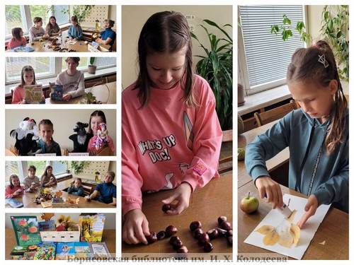 В ходе встречи семьи участвовали в игре «Лучший знаток грибов», разгадывали осенние загадки, составляли слова из каштанов, делали аппликацию из листочков, знакомились с книгами. Вниманию участников мероприятия были представлены книги, в название которых есть слово «золото». Это книги: Липский Вл. «Золотой домик», Черных В. «Приключения золотого крокодила», Пермяк Е. «Золотой гвоздь», Пришвин М. «Золотой луг», «Золотая книга сказок» и другие. Родители и дети приняли активное участие в кукольном театре «Огородники». Каждая семья получила в подарок яблоко с пожеланием здоровья.