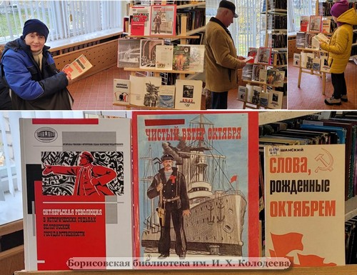 Пользователей библиотеки ждала книжная выставка «Чистый ветер Октября», на которой представлена литература, отражающая исторические события 1917 года. В сборнике статей «Октябрьская революция в исторических судьбах белорусской государственности» проанализированы различные аспекты Октябрьской революции 1917 года – поворотного события, в наибольшей степени определившего ход всемирной истории 20 века и оказавшего огромное влияние на процесс становления национальной белорусской государственности. Интерес читателей вызвала книга Шанского Н. М. «Слова, рождённые Октябрём» из которой можно узнать о словах, которые появились после Великой Октябрьской революции, об их происхождении, значении и употреблении. А дети читали стихотворение Самуила Маршака «День Седьмого ноября – Красный день календаря».