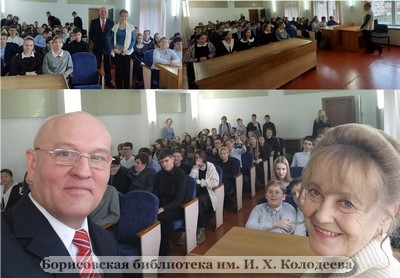 21 декабря поэты литературного объединения «Натхненне» Борисовской центральной районной библиотеки им. И.Х. Колодеева Вячеслав Полубинский и Клавдия Петрушенко приняли участие в Едином дне информирования для учащихся восьмых классов гимназии №3 г. Борисова. Встреча проходила в рамках информационно-образовательного проекта «Школа Активного Гражданина».