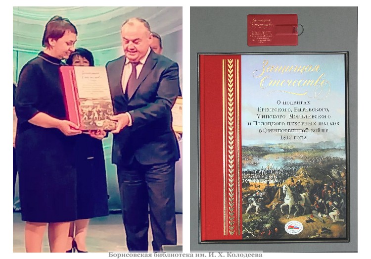 Во Дворце культуры г. Молодечно на областном празднике, посвящённом Дню работников культуры, Борисовской центральной районной библиотеке им. И.Х. Колодеева вручена первая книга нового масштабного издательского проекта «Библиотеки Союзного государства» – «Защищая Отечество».
