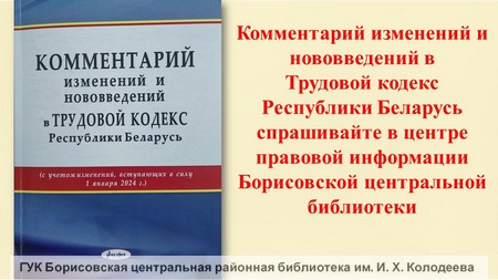 Воспользоваться Комментарием можно в центре правовой информации Борисовской центральной библиотеки на третьем этаже. Наш телефон 96-70-15.
