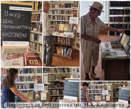 11 июля на абонементе центральной библиотеки, в рамках проведения единого дня здоровья, состоялись беседы с читателями с целью профилактики алкоголизма и пьянства. Обсуждаемая тема, к сожалению, по-прежнему актуальна для большинства людей, поэтому нашла отклик у читателей, дала стимул остановиться на минуту и задуматься, что можно предпринять, чтобы алкоголизм не стал реальной проблемой для кого-то из близких, ведь употребление алкоголя отрицательно сказывается не только на здоровье человека, но также влияет на его окружение, сослуживцев, семью, детей. При беседах были использованы информационные материалы УЗ «Борисовская ЦРБ» и других учреждений здравоохранения.